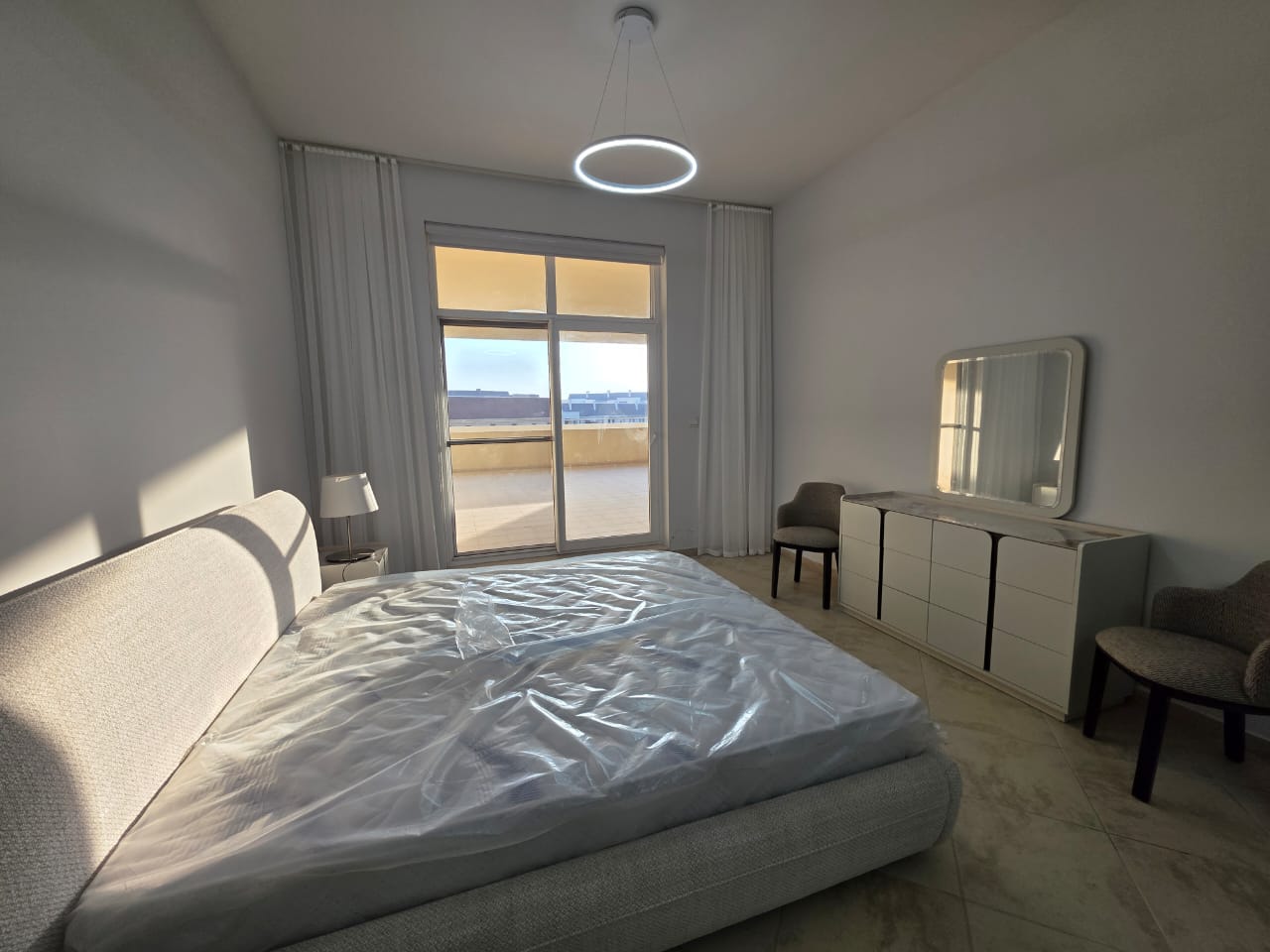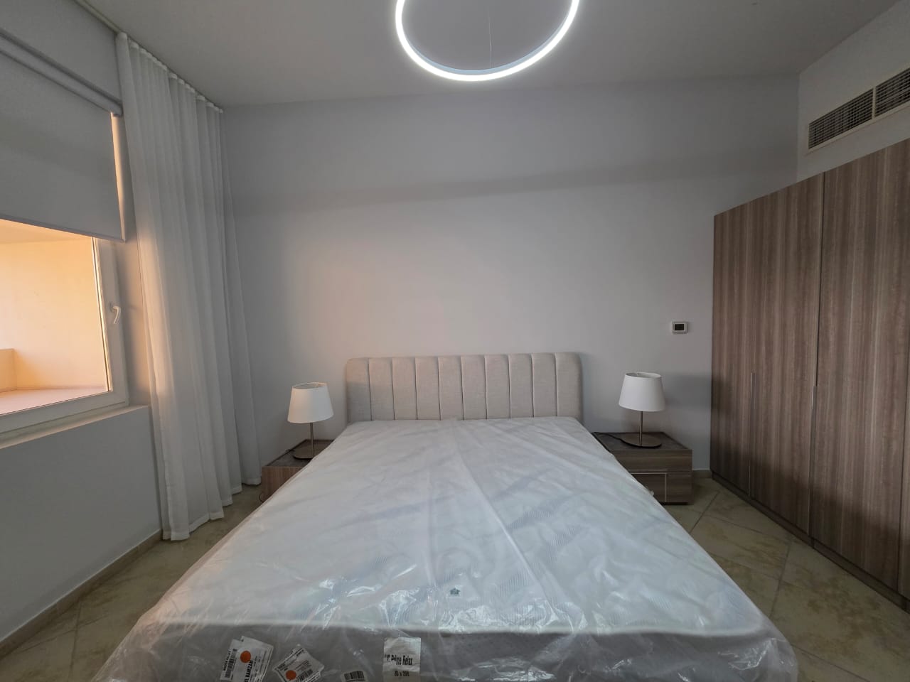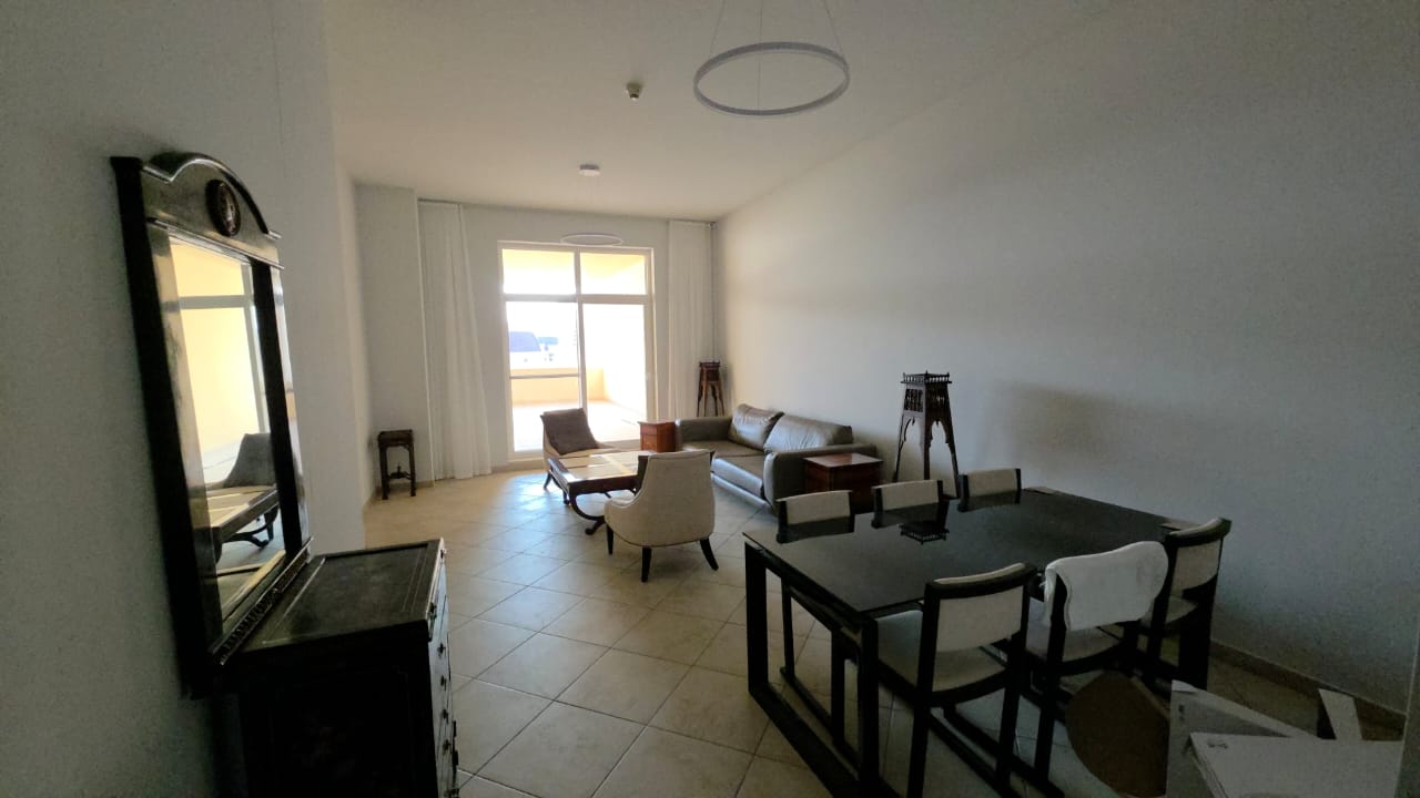 Apartment is located on low floor and features a big living room with semi open kitchen equipped with fridge and cooker, furnished living room with dining table and a smart couch.